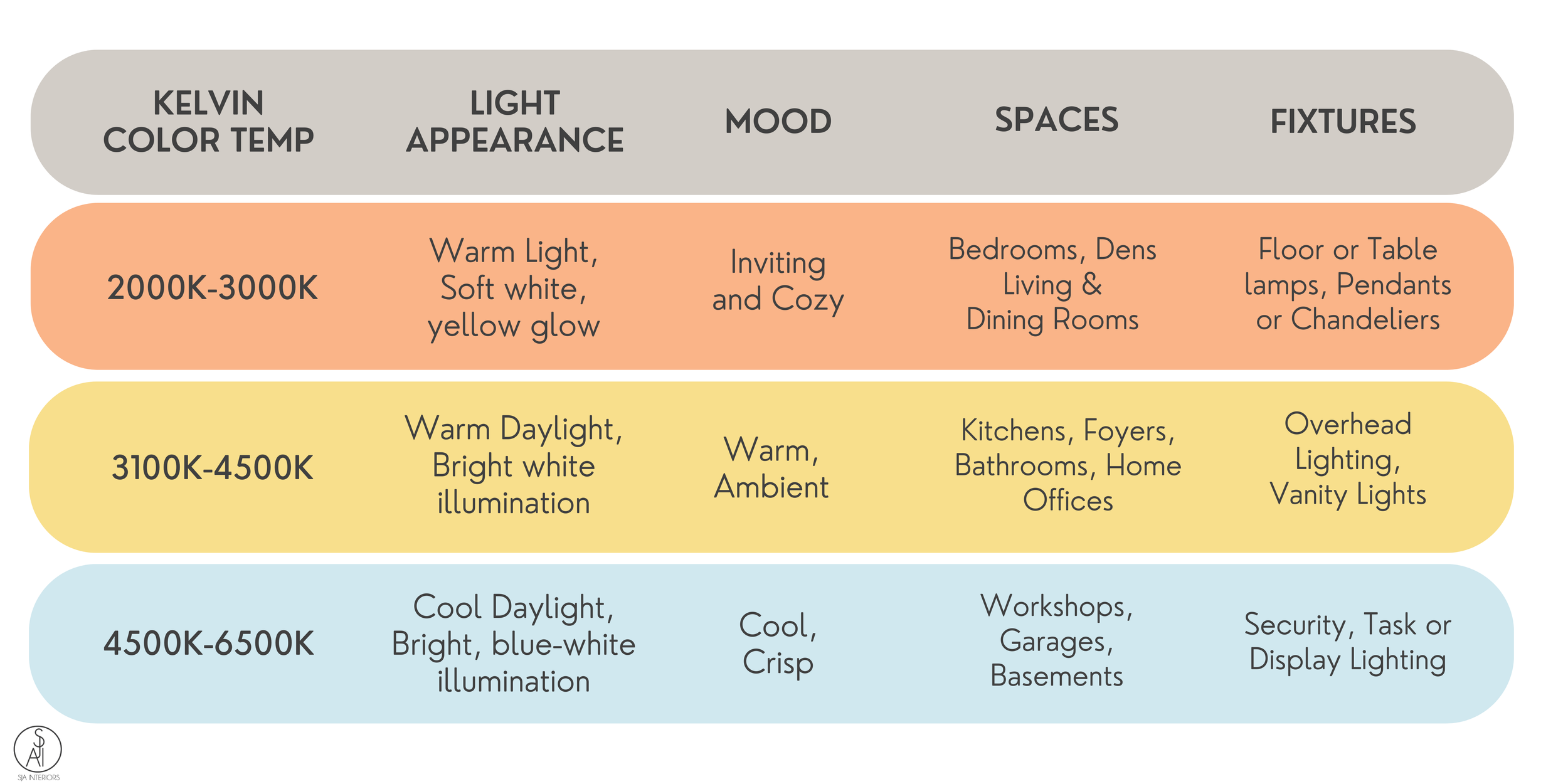 Neutral Light (3100K-4500K): Provides balanced, white light similar to midday sun. It works well with both warm and cool colors.