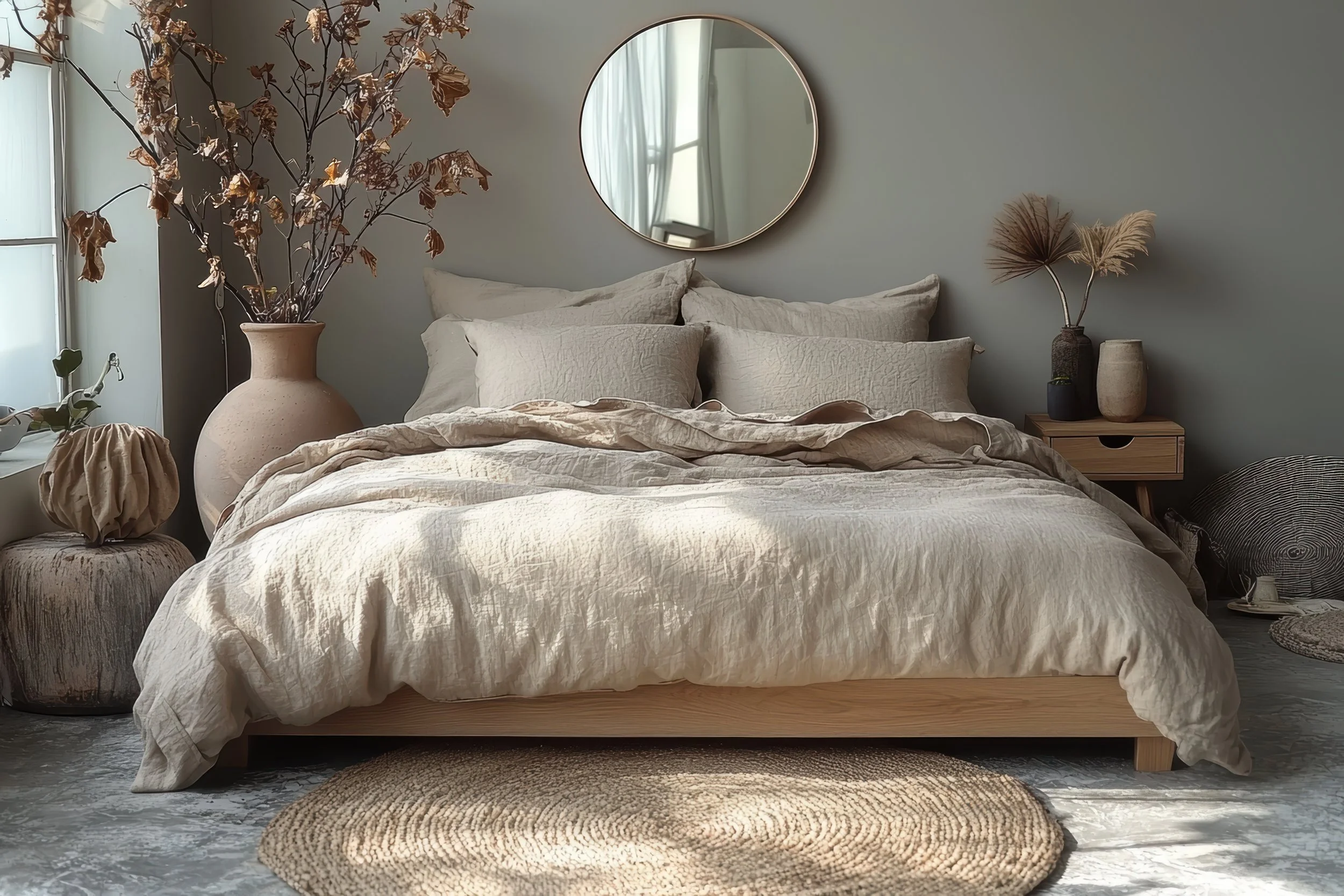 While color creates structure within a room, texture adds warmth and depth. Many calm interiors rely on layered textures to create visual interest without introducing visual chaos. Natural materials such as linen, wood, wool, stone, cotton, and woven fibers are especially effective because they bring softness and subtle variation to a space.